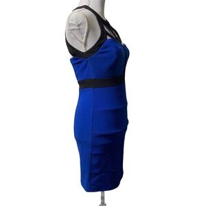 Crystal Doll Women Bodycon Blue Black Halter Top Dress Size 3 Preppy Retro Glam