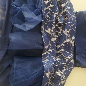 beautiful Crystal Doll dress, size 3, navy/nude/lace, removable belt, zip up back and 2 buttons on back collar/neckline, tulle underneath, looks awesome on, worn only once for 2 hours!