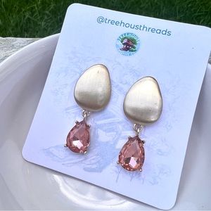 These gold and pink crystal sparklers are so pretty! Pierced earring posts. Brushed gold finish. Please see photos for details.