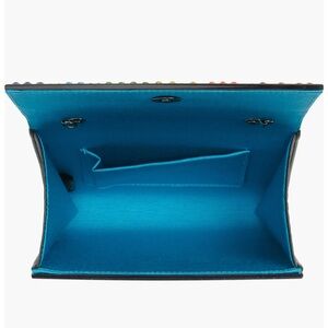 Dazzling crystals in rainbow hues move this glossy envelope clutch into party mode, while a drop-in chain strap leaves your hands free for drinks and mingling.