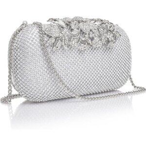 Crystal Evening Bag Rhinestone Formal Clutch Silver