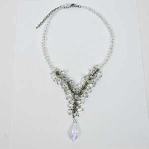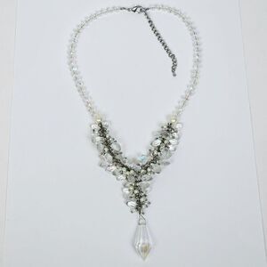 Crystal Faceted Glass Faux Pearl Cluster Y Statement Necklace Prism Drippy Bead