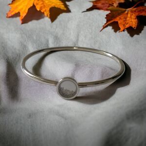 Crystal Floating Charms Locket Bracelet Bangle Silver Tone Modernist Academia. Condition is pre-owned and EXCELLENT condition. No chips or cracks. This doesn't open. Silver Tone. Unbranded. Please see all photos for detailed condition.