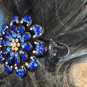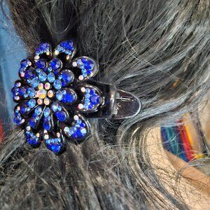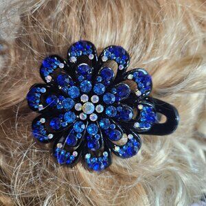 Crystal Flower Claw Hair Clip - Dark Blue - 137 crystals