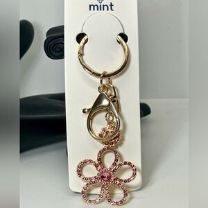 Bring a designer-inspired touch to your accessories with this stunning crystal-studded flower keychain charm from Mint. Featuring a luxurious Pink and clear rhinestone design, this elegant charm is perfect for adding a pop of sparkle to your bag, keys, or zipper pull. The durable gold-tone clasp ensures it’s both stylish and functional, making it a chic addition to any collection.