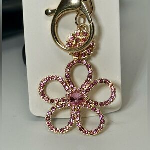 Crystal Flower Keychain Charm - Pink & Gold Accent