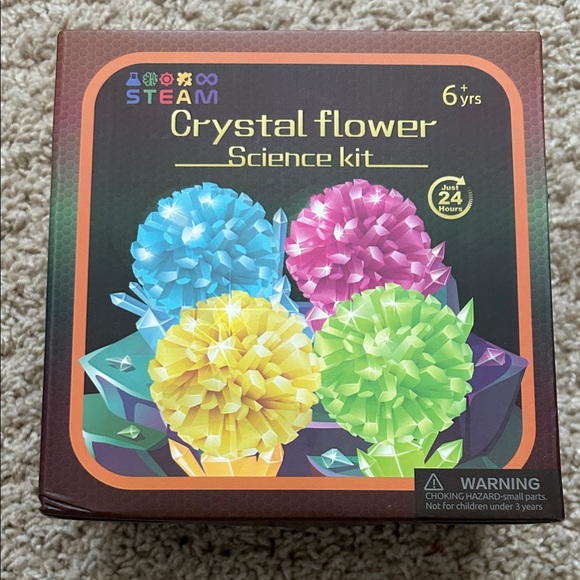 Create colorful crystal flowers with this science kit. Includes blue, pink, and yellow crystals.