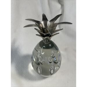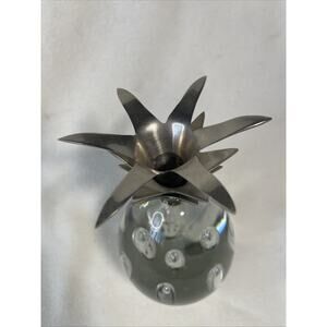 Crystal/ Glass 8” Pineapple Paperweight with Silver Metalic Top- Extremely heavy
