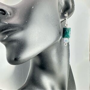 Colors: clear crystals with green chalcedony Silver-tone hook style brand new silicone back.