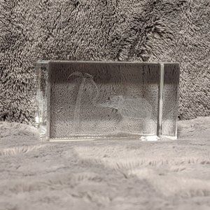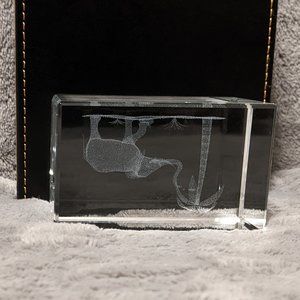 Crystal Glass Cube 3-D Elephant Palm Tree Safari Scene Laser Cut Paperweight Desk Decor. New without tags or box. Bottom has 2 small tiny scratches, you can't see them unless you look very closely. Weighs 1 lb 2 oz.