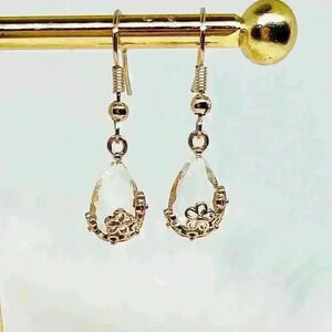 Crystal Gold Water Drop Earring New Around .8” inches Dainty and cute Color: clear & gold