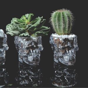 This is a set of two crystal head, vodka skull shot glasses