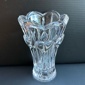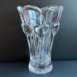 Beautiful scalloped edged lead crystal vase with raised hearts from Anna Hutte - Germany.