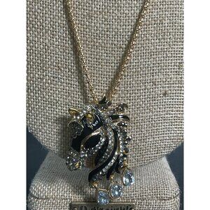 Crystal Horse Zebra Pendant Necklace Brooch Rhinestones & Gold Chain