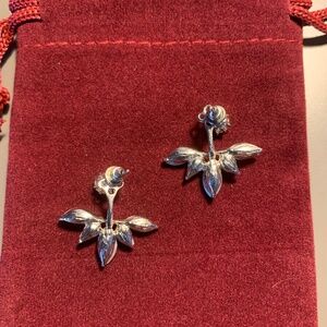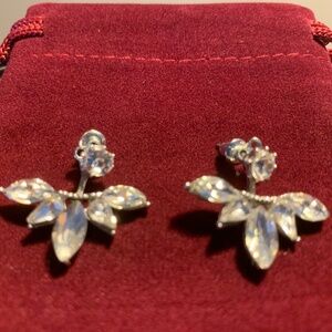 Crystal Jacket Earrings | Silver Tone Stud & Leaf Cluster Drop, Two-Piece Design