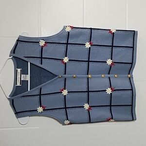 Crystal Kobe 100% Cotton Knit Sweater Vest Denim Blue Navy Gold Buttons