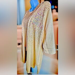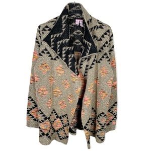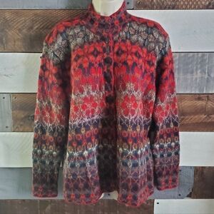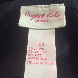 Crystal Kobe Black Holiday Zip Up Patchwork Pattern Cardigan Sweater Size 2X