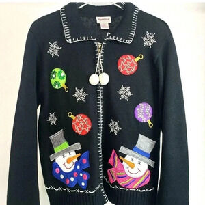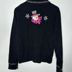 Crystal Kobe Christmas Snowman snow flakes zipper sweater size Medium