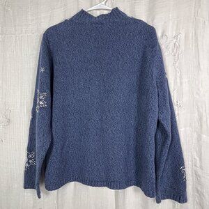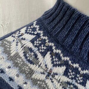 Ramie Cotton Winter Ski Outdoors Snowflake Sequins Bead Silver Blue Embroidery Nordic Fair Isle Vintage