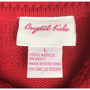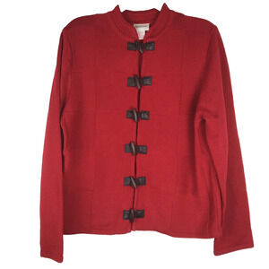 Crystal Kobe Knit Cardigan Red Sweater Wooden Toggle Closure Women's Large