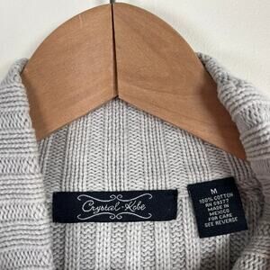 Crystal Kobe Light Gray Ribbed Cable Knit Mock Neck Cotton Sweater Women Size M