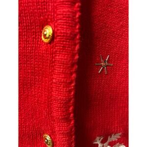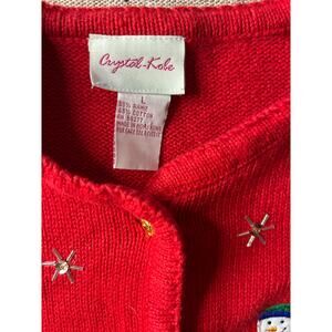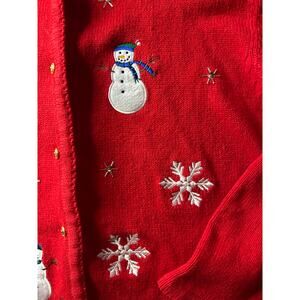 Crystal Kobe Red Snowman Sweater Large Ramie Cotton Button Up Holiday Vintage