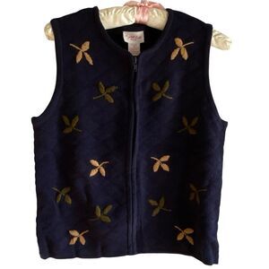 Crystal Kobe Sweater Vest Womens Petite M Leaf Embroiery Blue Grandmacore NWT