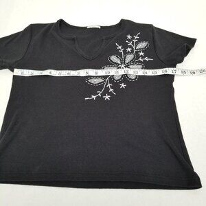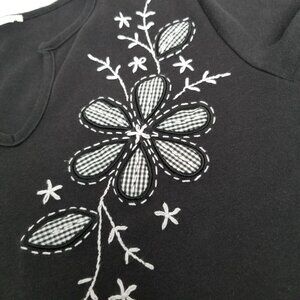 Crystal Kobe Vintage Black White Floral Embroidered Top Large Keyhole Neckline