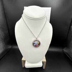 Crystal Locket Necklace 36" Multicolor Caged Crystals Pave Silver Tone Frame