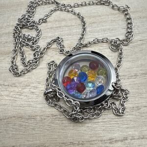 Crystal Locket Necklace 36" Multicolor Caged Crystals Silver Tone Frame READ