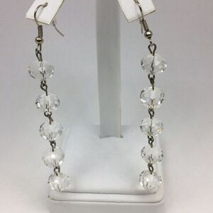 These earrings feature five faceted crystal drops with French hooks. Will include rubber backs