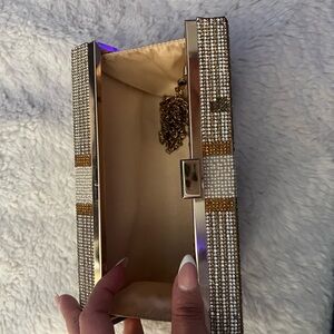 Comes with a chain cross body in gold plated . Has been pre loved so it is missing a few crystals!