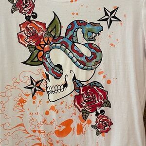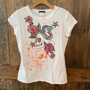 Crystal Mongkey XL* White Red Gypsy Rose Sugar Skull Skelton T-Shirt