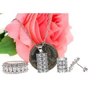 Crystal Necklace Earring Ring Set CZ Cubic Zircon Rhinestone Necklace Earrings