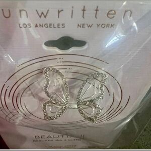 Add a touch of sparkle and whimsy to your outfit with this silver-plated open butterfly ring! Designed with delicate crystal-studded wings and an open front silhouette, it’s both lightweight and eye-catching — perfect for everyday magic or dressed-up moments.