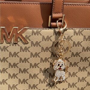 Crystal Pave Dog Bag Charm Keychain – Gold Tone Sparkly Puppy Bling! 🐾🐾