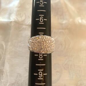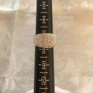 A fun crystal pave dome ring. The ring is silver. All rhinestones are in place with none missing. The ring is a size 7 1/2. See photos.