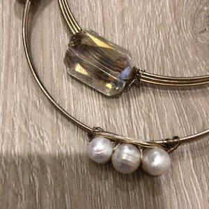 Crystal & Pearl Gold Bangle Bracelets