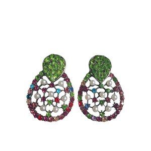 Elegant earrings featuring multicolor crystals and faux pearls in a teardrop design. Lightweight and secure with post-back closures, perfect for elevating any accessory collection.