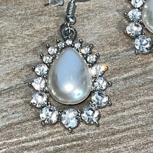 Crystal Pearl Teardrop Gold Tone Hook Earrings Elegant Wedding Prom Date Night