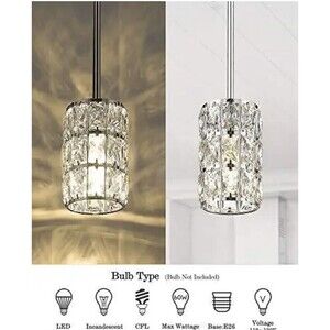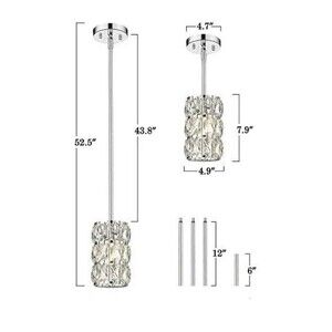 【BULB REQUIREMENTS】 This crystal light requires 1 x E26 base bulb, 60W max. Fully dimmable when used with a dimmable bulb and dimmer switch (bulb and dimmer switch not included). 【ADJUSTABLE HEIGHT】 With adjustable 1 x 6" and 3 x 12" rods, the pendant light fixture can be adjusted from 16.5"to 52.5" easily. Perfect for living room, dining room, kitchen island, kitchen, bedroom...