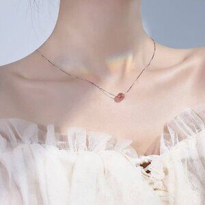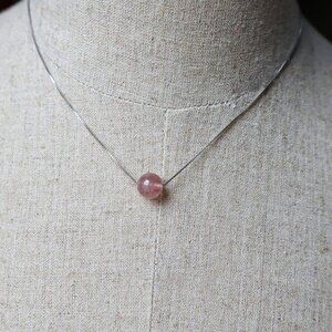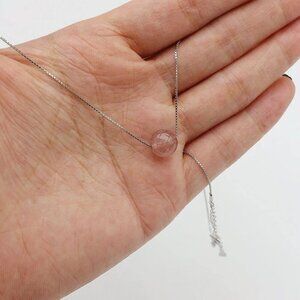 Unique Looking Dainty Rose Quartzt floating on a tiny 925 sterling silver chain. This necklace is very lightweight and has a delicate, subtle look. Enhances beauty with stunning combination a must have addition to any woman's jewelry collection.