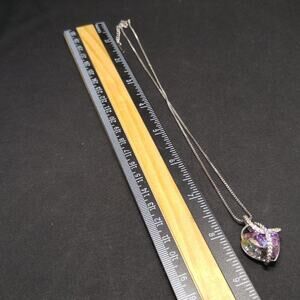 This is a beautiful crystal pink heart necklace looped with aurora borealis rhinestones and an 18 inch box chain. The tag is stamped 18KGP and Charm.