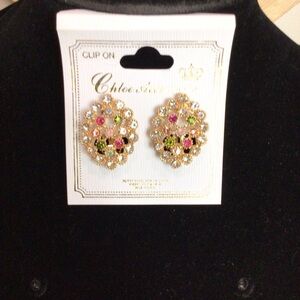 Crystal Rhinestone Bling Sparkle Special Occasion Oval Clip-On Earrings. New on jewelry card in plastic packaging.