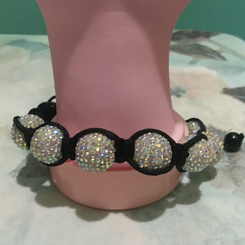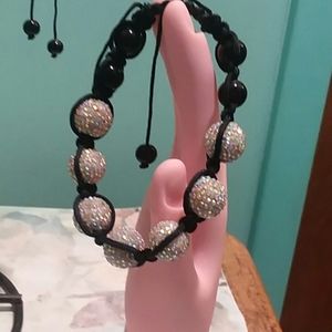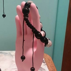 Pull string allows 4in to 6in expansion. Like new. 6 black crystal beads. 7 ea rhinestone crystals on a special beads. Like new.