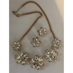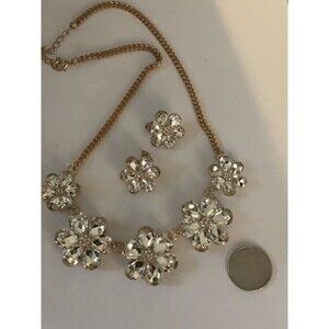 Crystal Rhinestone Daisy Flower Statement necklace 20” Matching Pierced Earr