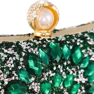 Green Crystal Clutch Evening Bag Synthetic Pearl Clasp NWOT