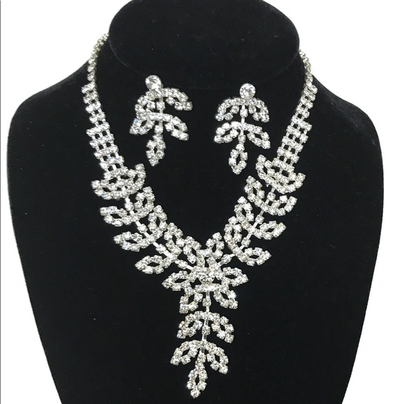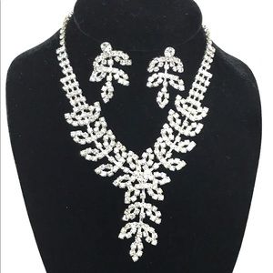 Crystal & Rhinestone Leaf Necklace Set