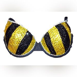 Crystal Rhinestone Stripe Black & Yellow Glam Bling Bra Top All Sizes New