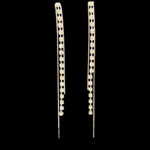 Crystal Rhinestones Silver Chains Dangling Drop Tassel Earrings 3 Strands 4" L